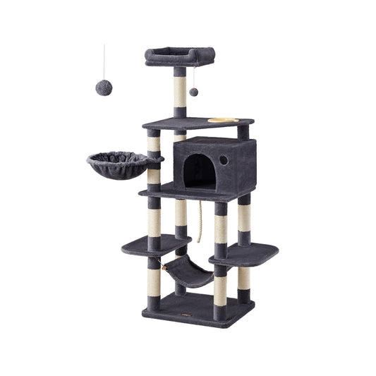 Katzenbaum mit Kratzbrett 145 cm Grau
